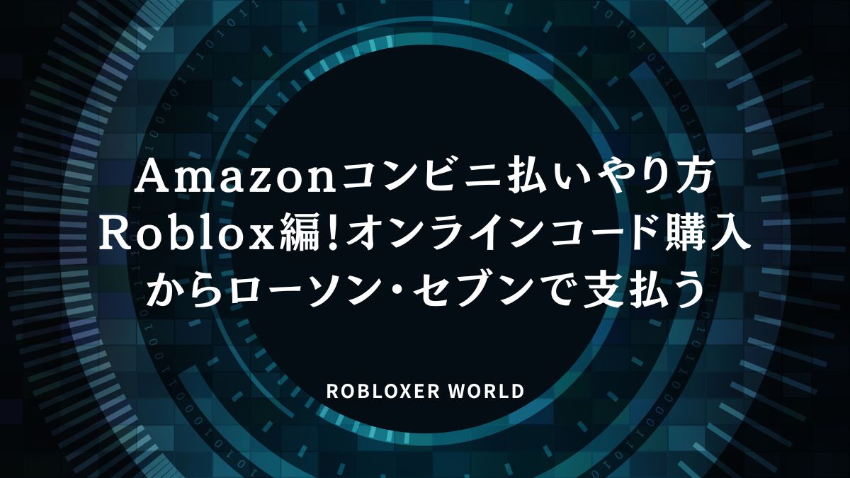 Amazon.co.jpにログインし、Robloxギフトカードデジタル版を選択。カートに入れ「注文確定画面」で支払いを「コンビニ・ATM・ネットバンキング」にします。注文完了後、メールと注文履歴に番号・バーコードが届きます。確認メールにコンビニ一覧ありです。