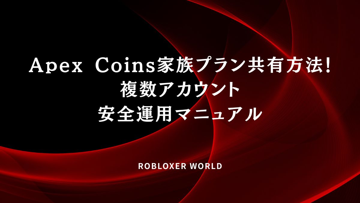 Apex Coinsを家族で共有し複数アカウント運用する安全マニュアル。EAアカウント共有とクロスプログレスでコスパ最大化します。