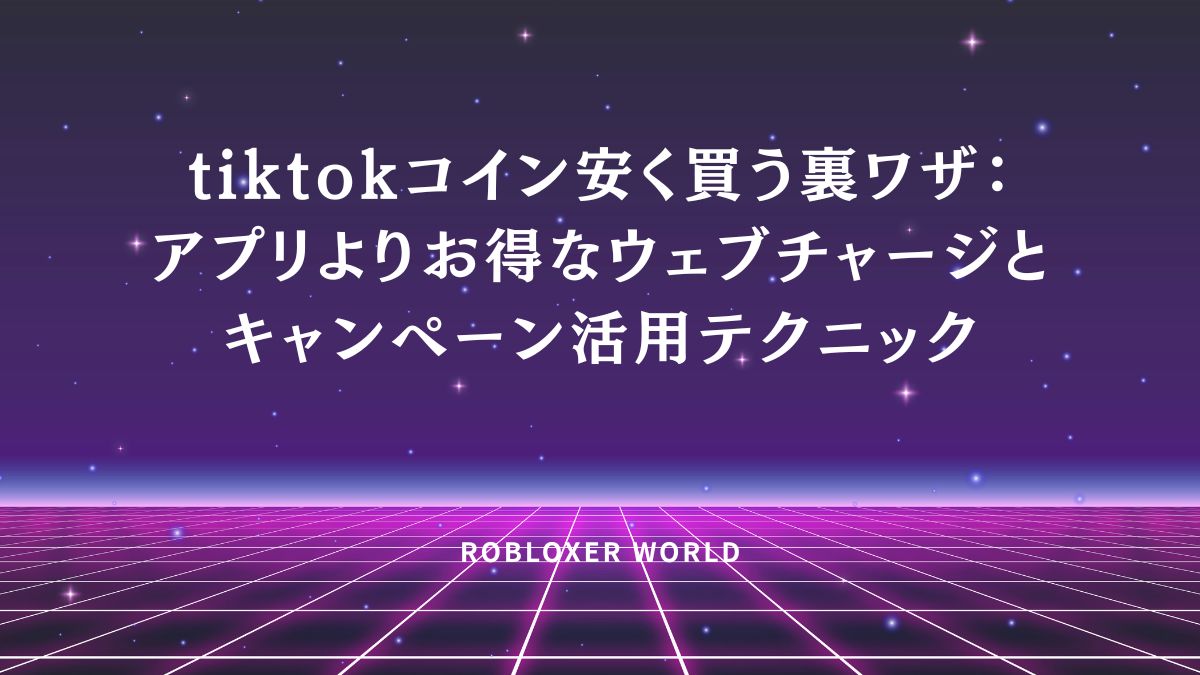 Robloxユーザーなら馴染み深いはずで、RobuxもWeb版がモバイル比25%お得(ボーナスRobux付与)と構造が同じく、こうしたプラットフォーム手数料回避の理屈をTikTokに応用できます。これらを組み合わせ、Webベース+還元カード+キャンペーンで単価0.75円を実現し、毎回の課金でギフト量を1.5倍以上に増やしましょう。購入前にブラウザ拡張で価格比較をし、TikTok通知や公式SNSでキャンペーンを監視。Robux感覚で最適ルートを習慣化すれば、予算内で最大限の推し応援が可能になります。今日から実践して、無駄ゼロのコイン生活を手に入れてください。